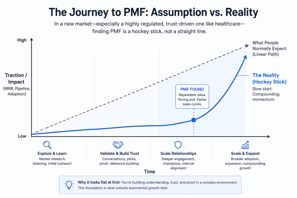 But in reality—especially in enterprise, highly regulated, trust-driven markets like healthcare—that’s not how traction actually forms.